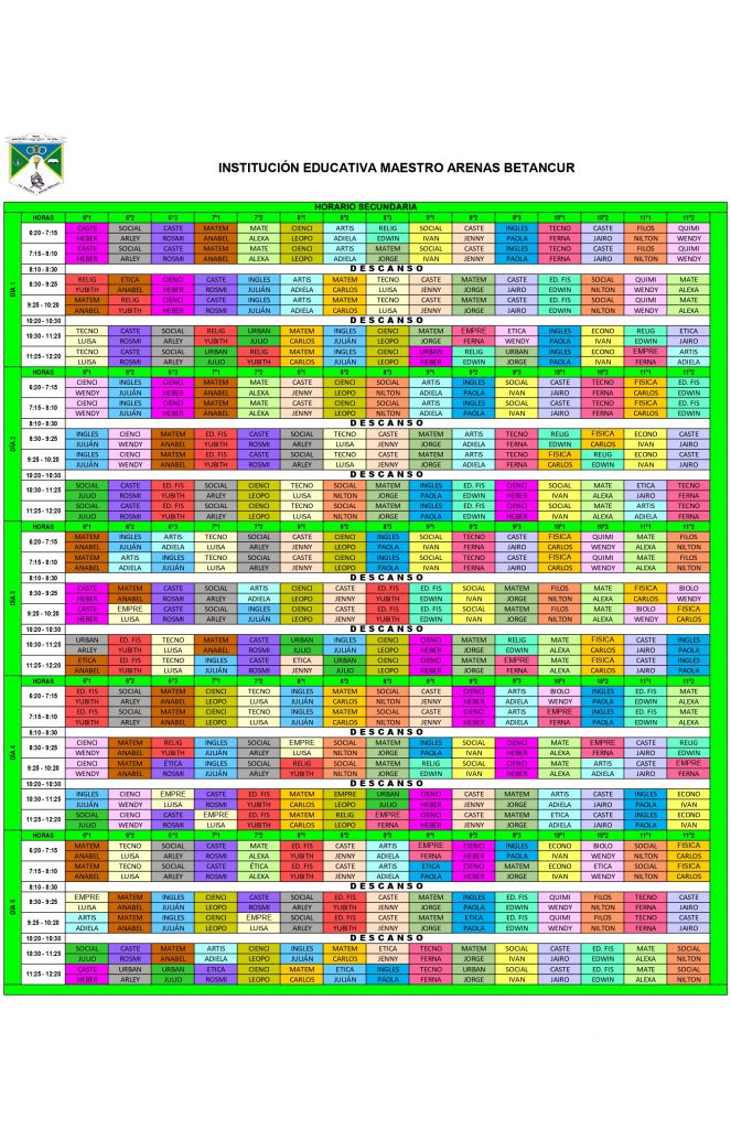 Socializamos el nuevo horario para secundaria. Recordamos que este empieza a regir a partir del martes 8 de febrero, con el día 1.